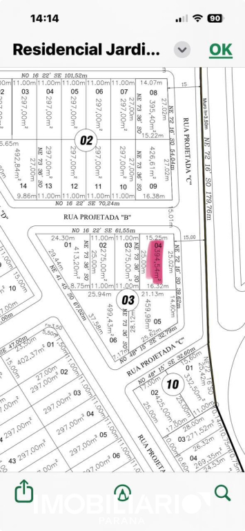 Residencial Jardins de Versailles – Lote de terras n.ºs 04, da Quadra n.º 03, situado à Rua Maria Antonieta esquina com a Rua Filipe de Orleães, S/N.º localizado no “RESIDENCIAL JARDINS DE VERSAILLES”, com área total de 394,54m². Medidas: 15,25m de frente x 25,02m lateral x 16,32m fundos x 25,00m lateral.